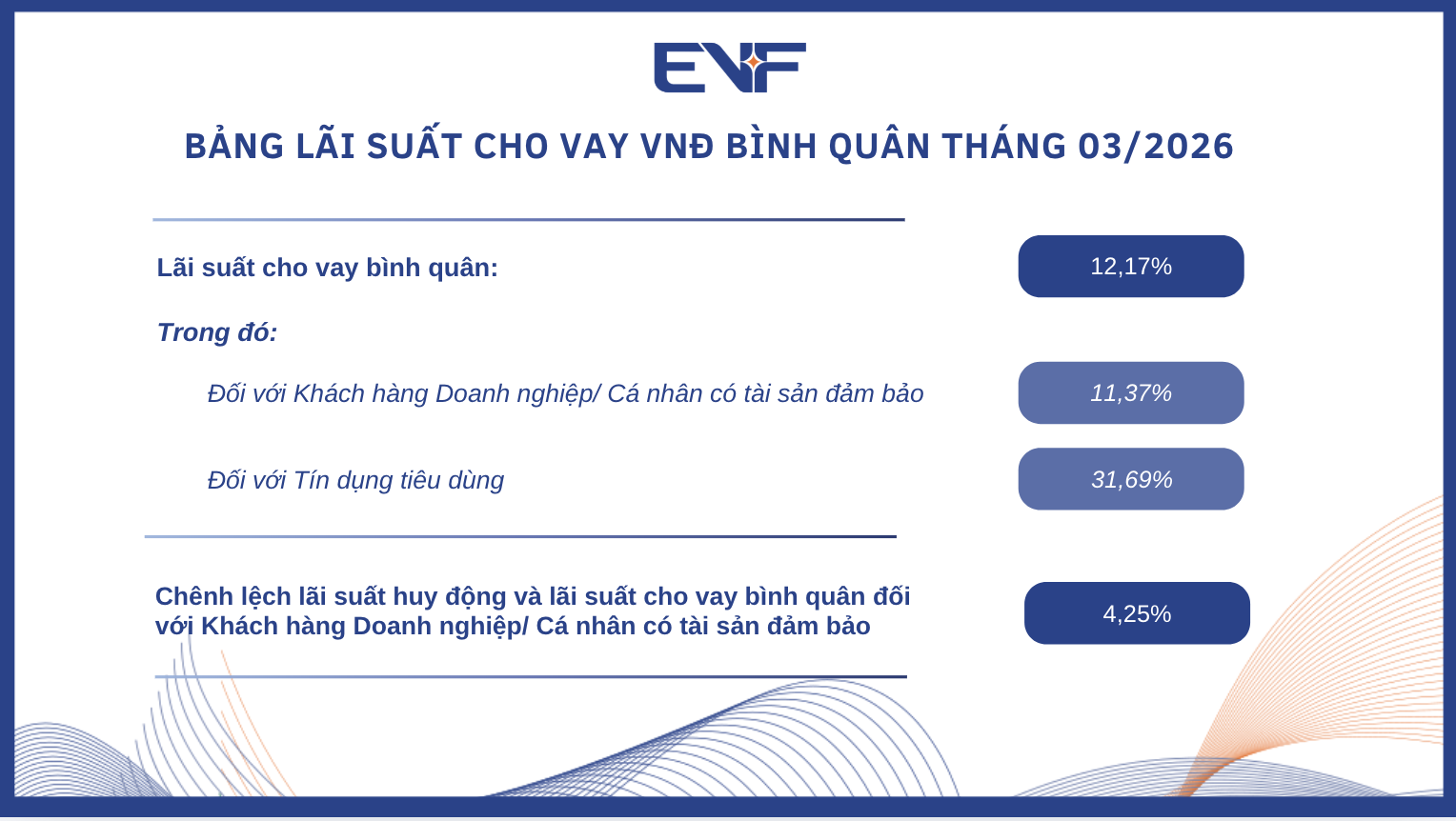 Lãi suất cho vay VNĐ bình quân tháng 03/2026