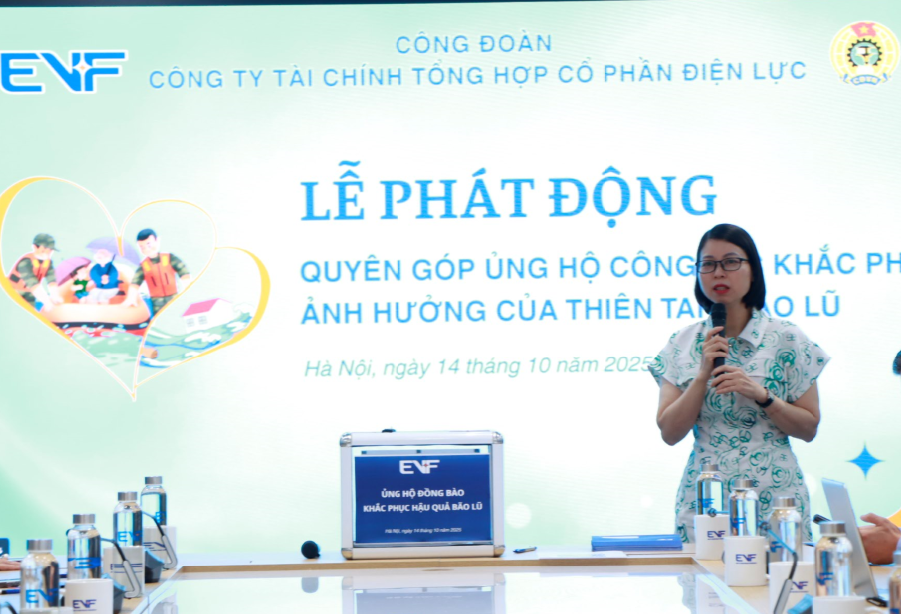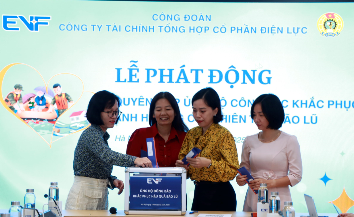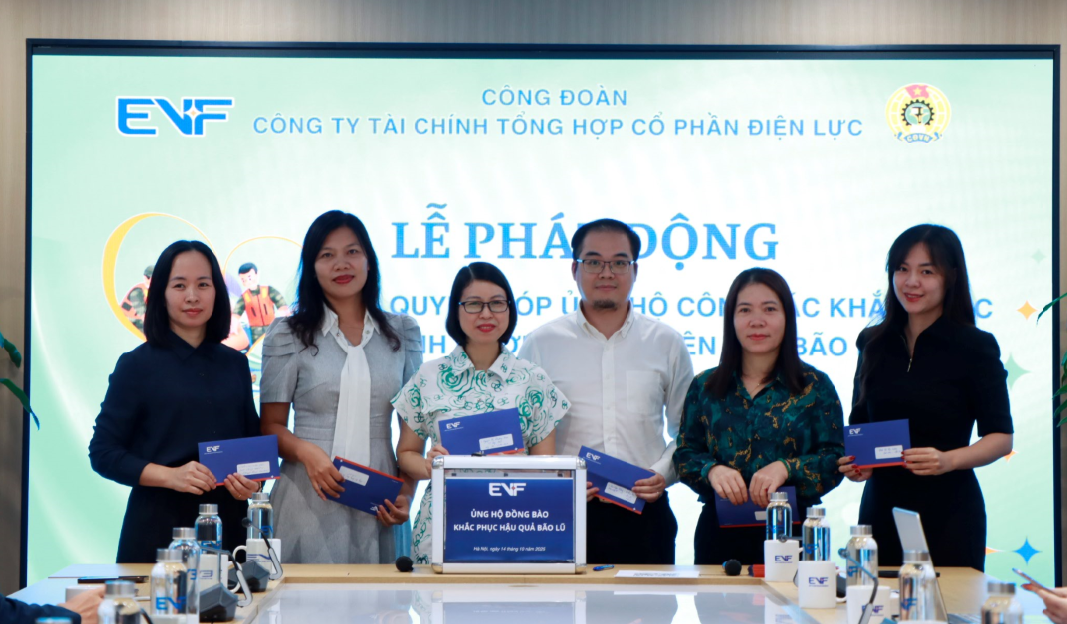 Thực hiện lời kêu gọi của Ủy ban Trung ương Mặt trận Tổ quốc Việt Nam, Ngân hàng Nhà nước Việt Nam và Công đoàn Điện lực Việt Nam, đồng thời xuất phát từ tấm lòng tương thân tương ái và tinh thần sẻ chia vượt khó, ngày 14/10 Công đoàn Công ty Tài chính Tổng hợp Cổ phần Điện lực (EVF) đã tổ chức Lễ Phát động quyên góp ủng hộ công tác khắc phục hậu quả sau bão lũ tới tất cả các thành viên trong hệ thống EVF.