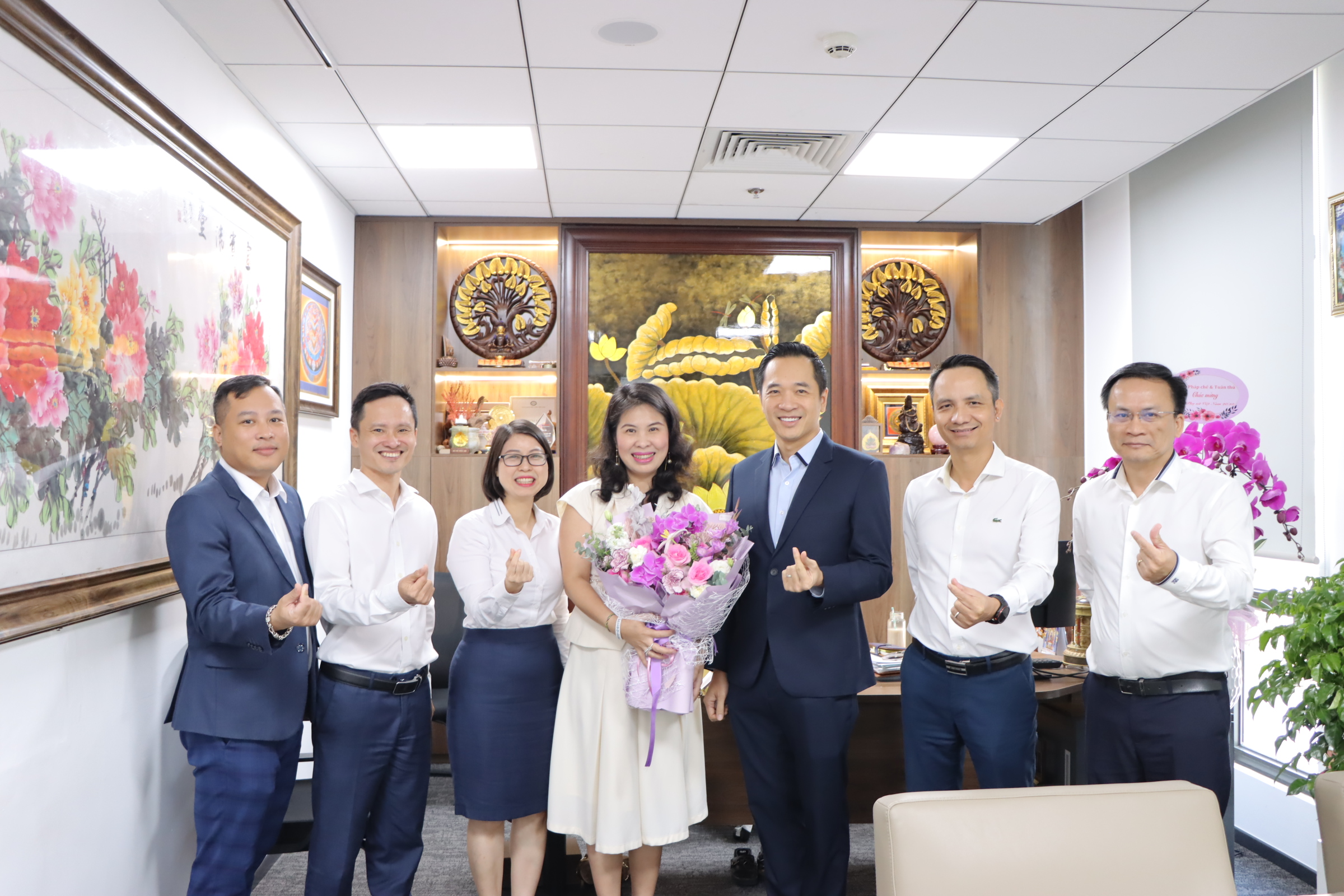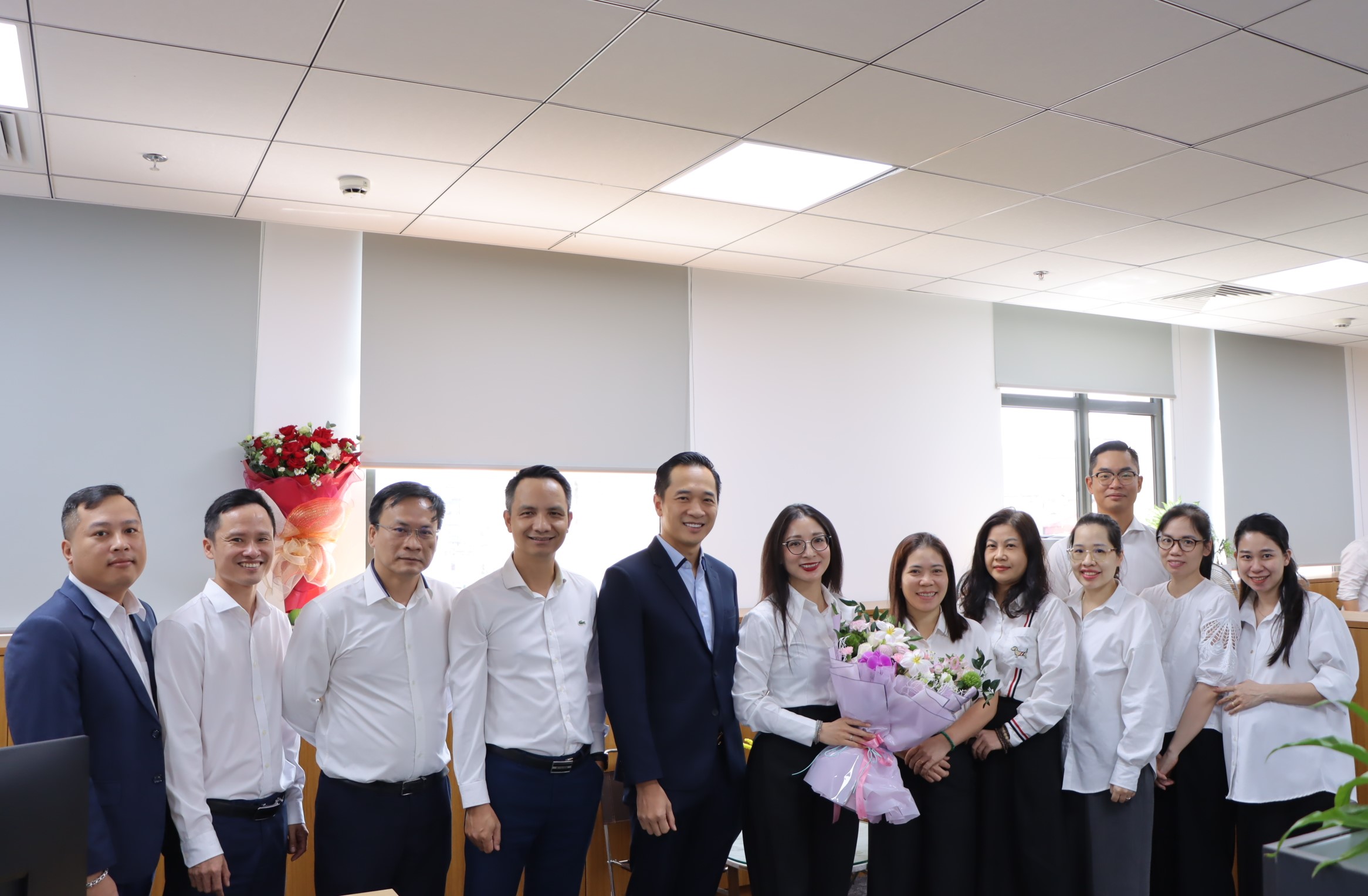Ban lãnh đạo gửi tặng hoa và những lời chúc tốt đẹp đến các chị em Khối Quản trị Điều hành.