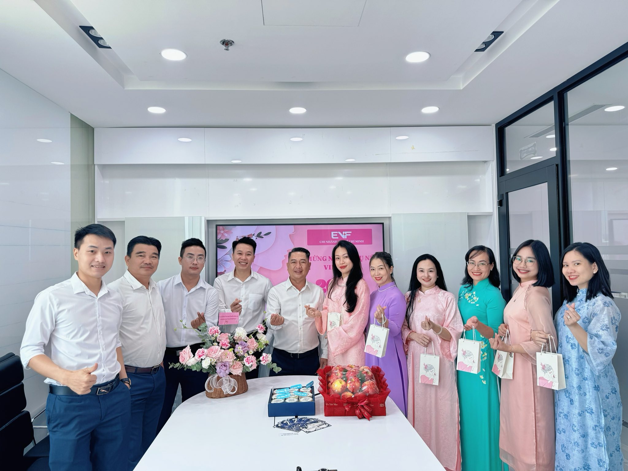 Không khí rộn ràng của Ngày Phụ nữ Việt Nam 20/10 cũng lan tỏa đến các chi nhánh, văn phòng của EVF tại TP. Hồ Chí Minh, TP. Đà Nẵng. Dù ở đâu, những lời chúc, món quà, bó hoa và nụ cười vẫn là sợi dây kết nối, thể hiện tình cảm và sự trân trọng dành cho các CBNV nữ.
