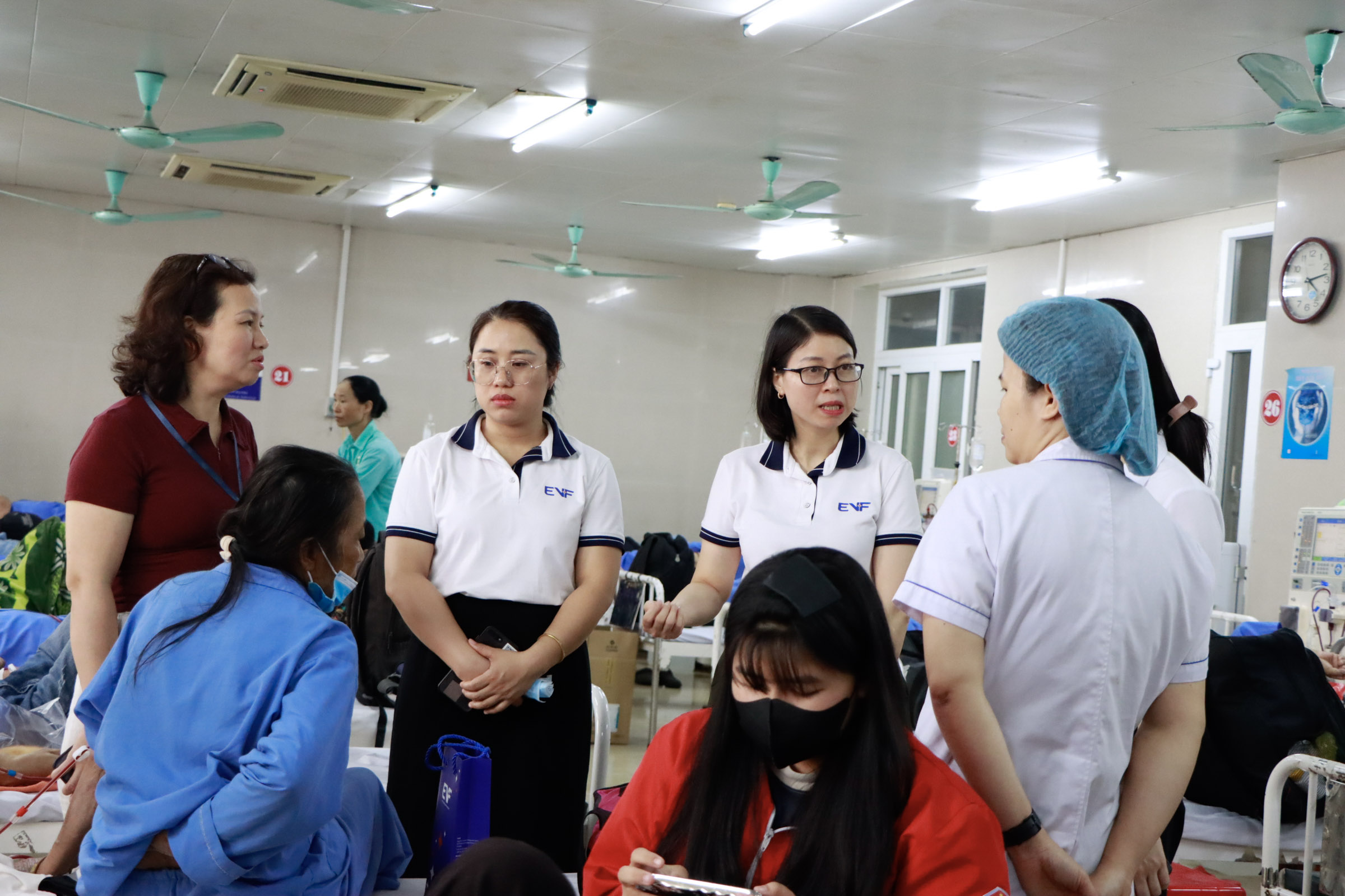 Đi qua từng khoa phòng, gặp gỡ từng bệnh nhân, mỗi thành viên trong đoàn đều mang về những cảm xúc rất riêng. Có những nụ cười khi người bệnh vẫn giữ được sự lạc quan, nhưng cũng có những ánh mắt chất chứa nỗi lo chưa thể gọi thành lời. Chính những khoảnh khắc ấy khiến hành trình của EVF không chỉ dừng lại ở việc trao đi, mà trở thành sự kết nối – nơi người trao và người nhận cùng chạm tới những giá trị nhân văn sâu sắc.